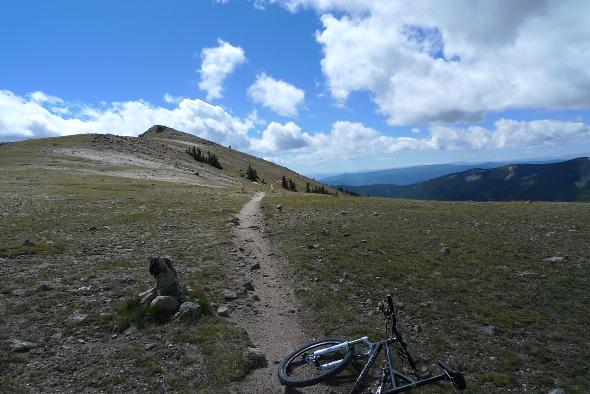 The classic route follows the Continental Divide past Marshall Pass, where Silver Creek is taken down to the Rainbow Trail. The Rainbow Trail is a real gem. It is a lot of work, especially for those that climb 4000+ feet up Hwy 50 to start the ride. But there is another option to ride the crest that is almost all on dirt. It is on the west side of the divide. This option starts in Sergents, takes dirt Old Monarch Pass road up to the divide, where the CDT is taken two miles to Hwy 50 at Monarch Pass (the new one I guess). Then since your car is at the bottom on the west side, a different trail must be taken down. Agate Creek is the option I chose. The whole loop runs about 36 miles and has a little less climbing than the classic loop since Sergents sits higher than Poncha Springs.