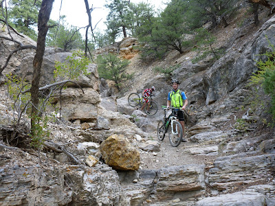At the singletrack, we met a couple local women ready to bomb down. One of their mother's shuttled them up. No delicate daisies though. Junction Creek is a rough descent and I'm sure it claims victims regularly. We discussed other rides in the area. One visits New Hampshire regularly and asked about where to ride in New England. I was apprehensive about entering the trail before the women did, as I was sure I'd get girled on the descent.
